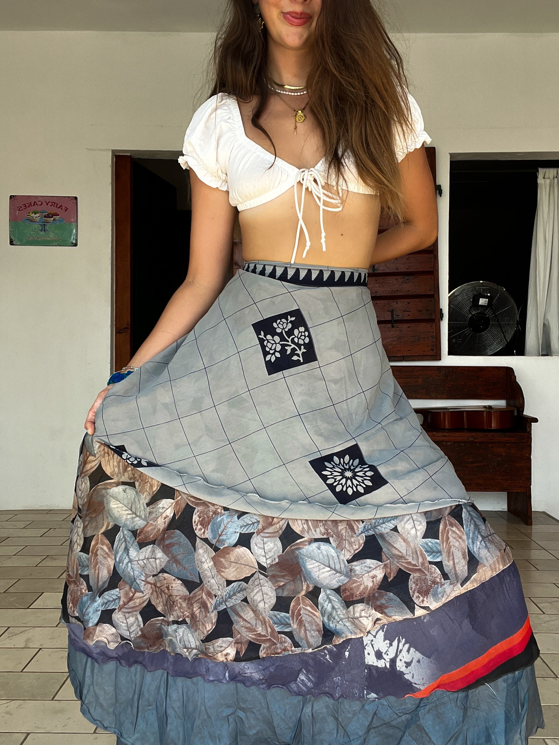 vintage sari wrap skirt sample, a little long in sections