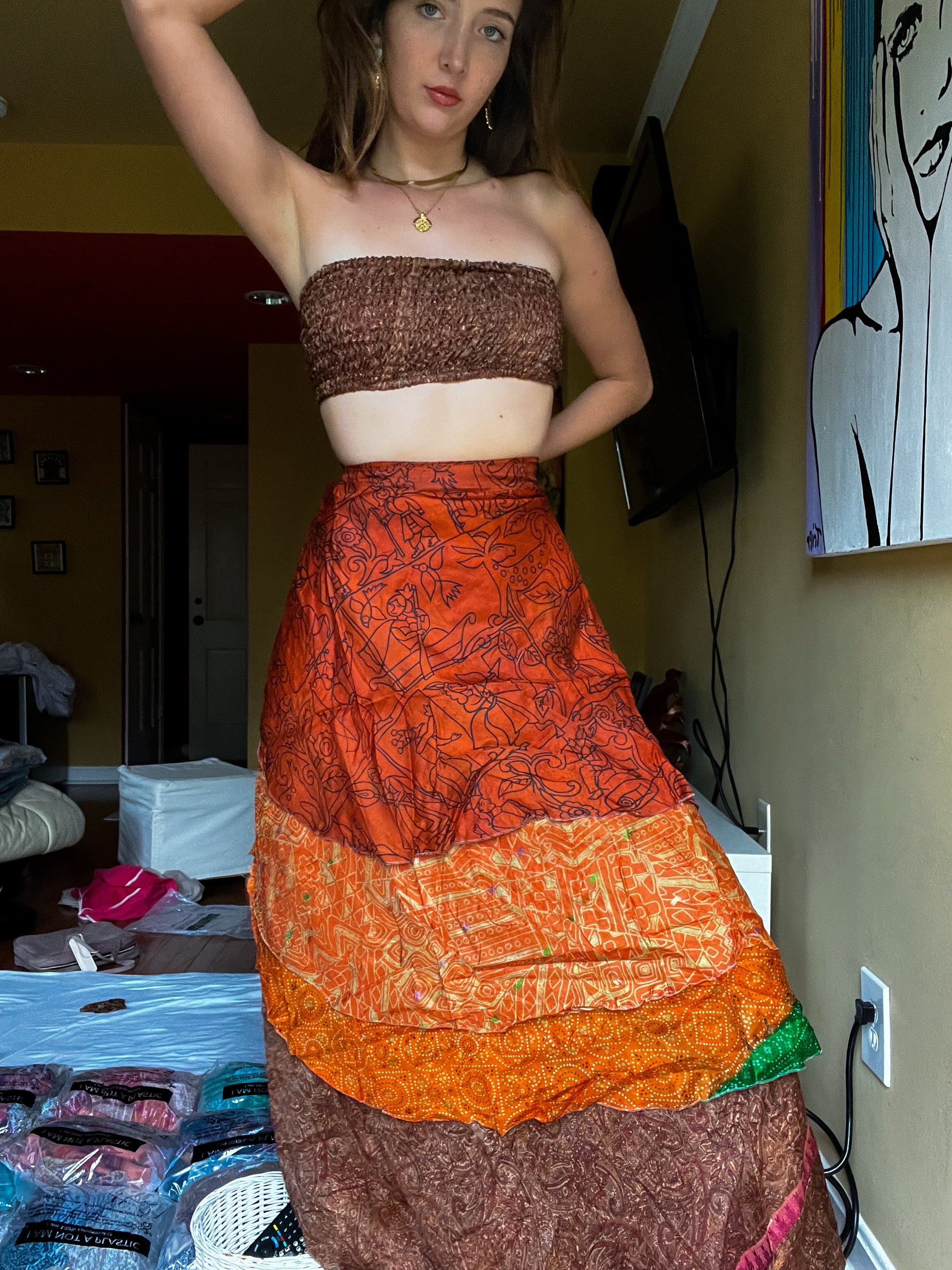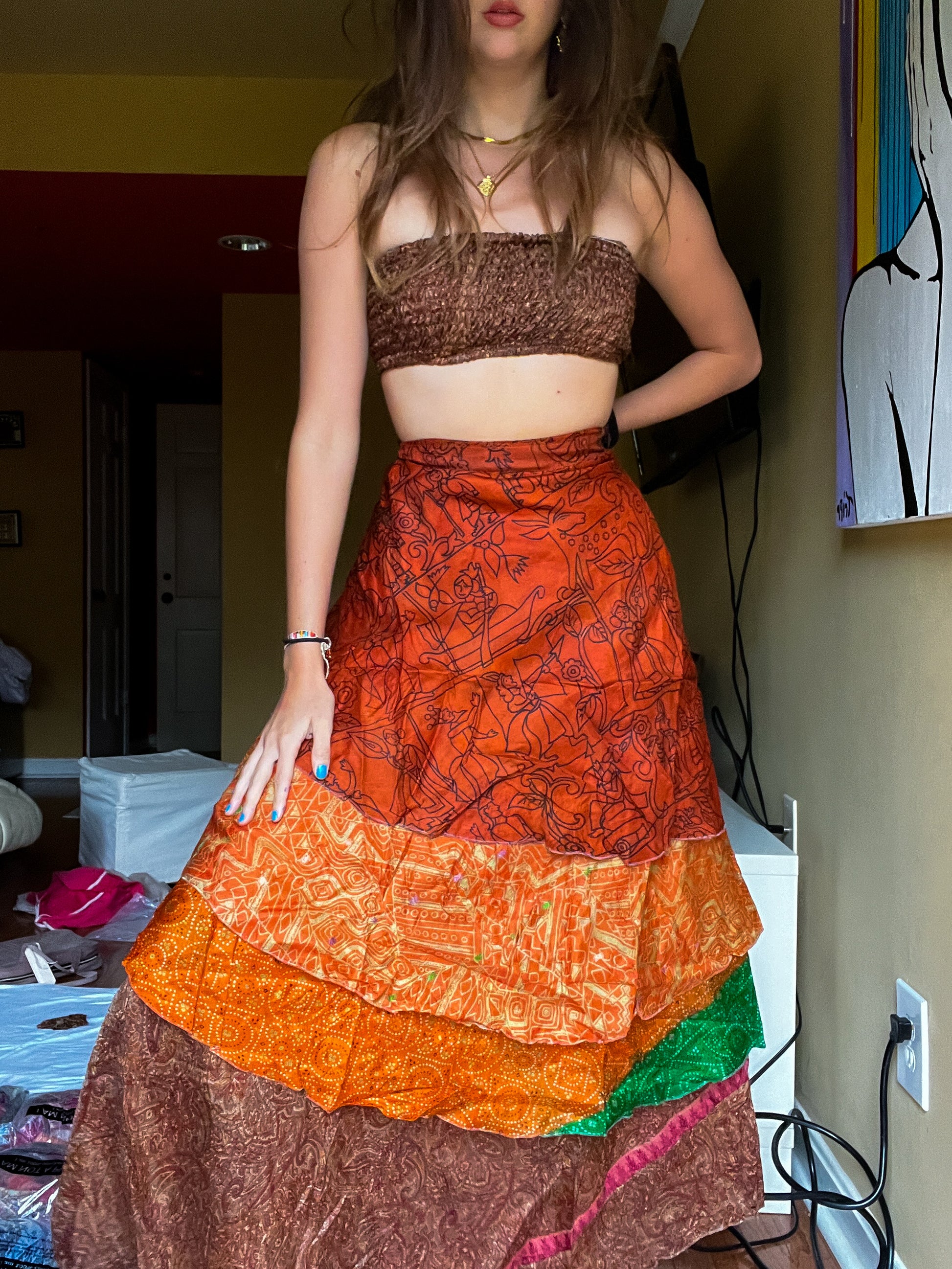 vintage 4 layer sari wrap skirt + top + scrunchie
